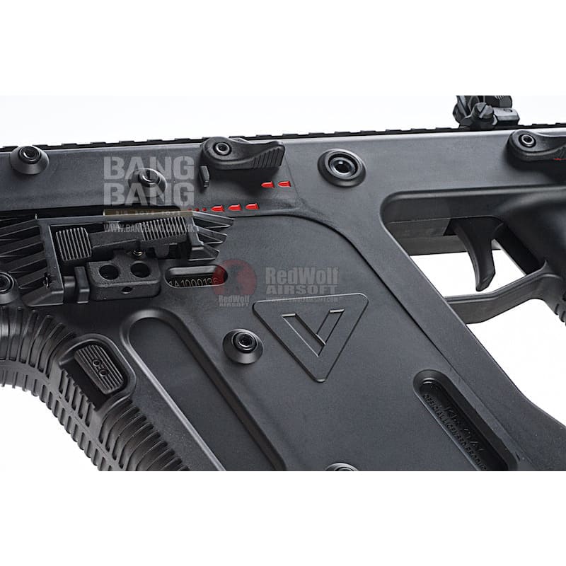 Licensed KRISS Vector GEN II housing Licensed KRISS Vector GEN II folding stock Licensed DEFIANCE flip up iron sights Ambidextrous fire selector Semi, two-round burst, full auto fire modes Ambidextrous safety KRISS Vector GEN II pivoting trigger MIL-STD 1913 picatinny top rail MIL-STD 1913 picatinny bottom rail